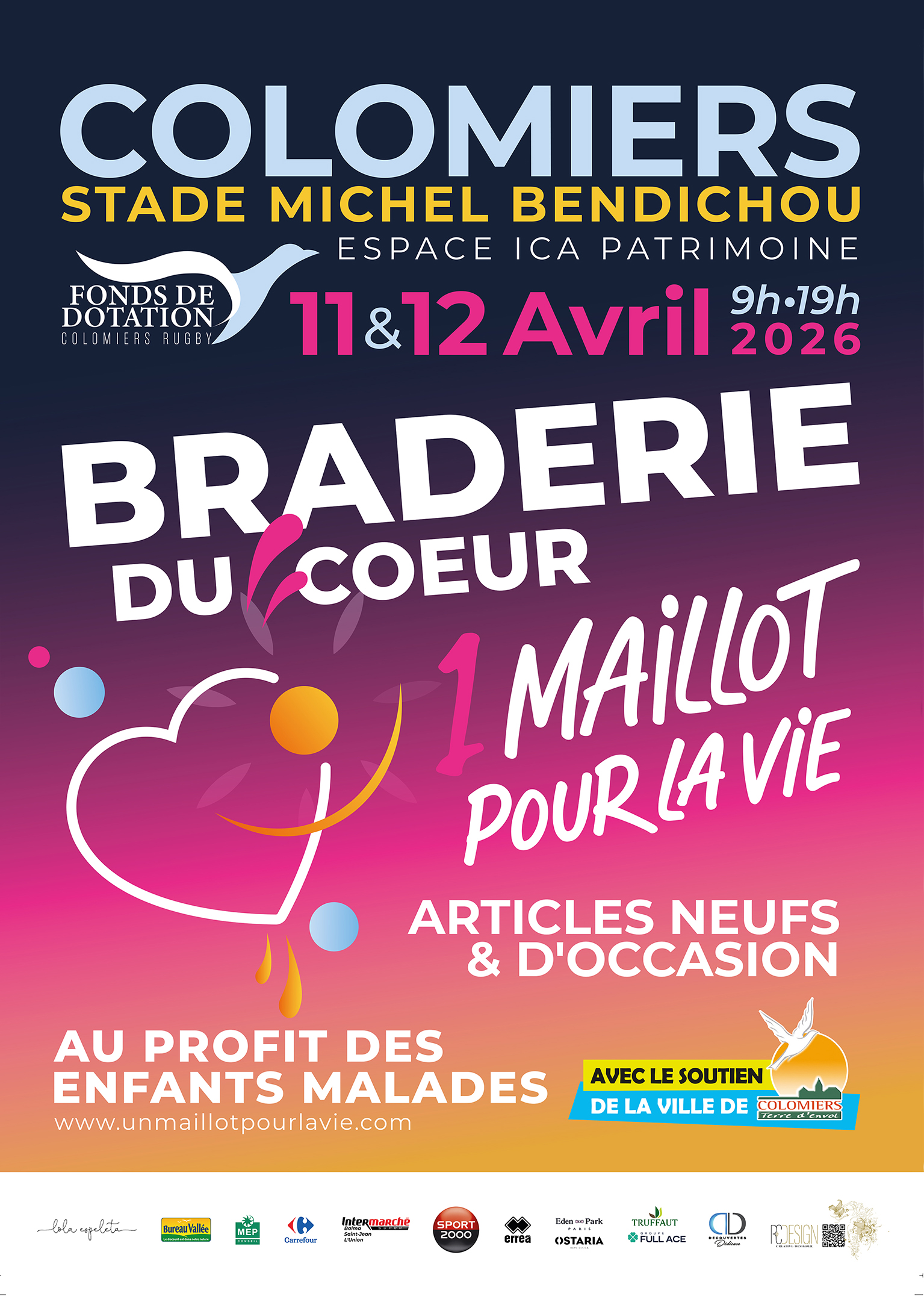 L’association 1 Maillot pour la Vie renouvelle sa Braderie du Cœur les 11 et 12 avril à Colomiers, espace ICA Patrimoine du stade Michel Bendichou, pour une édition de printemps qui s’annonce exceptionnelle!
