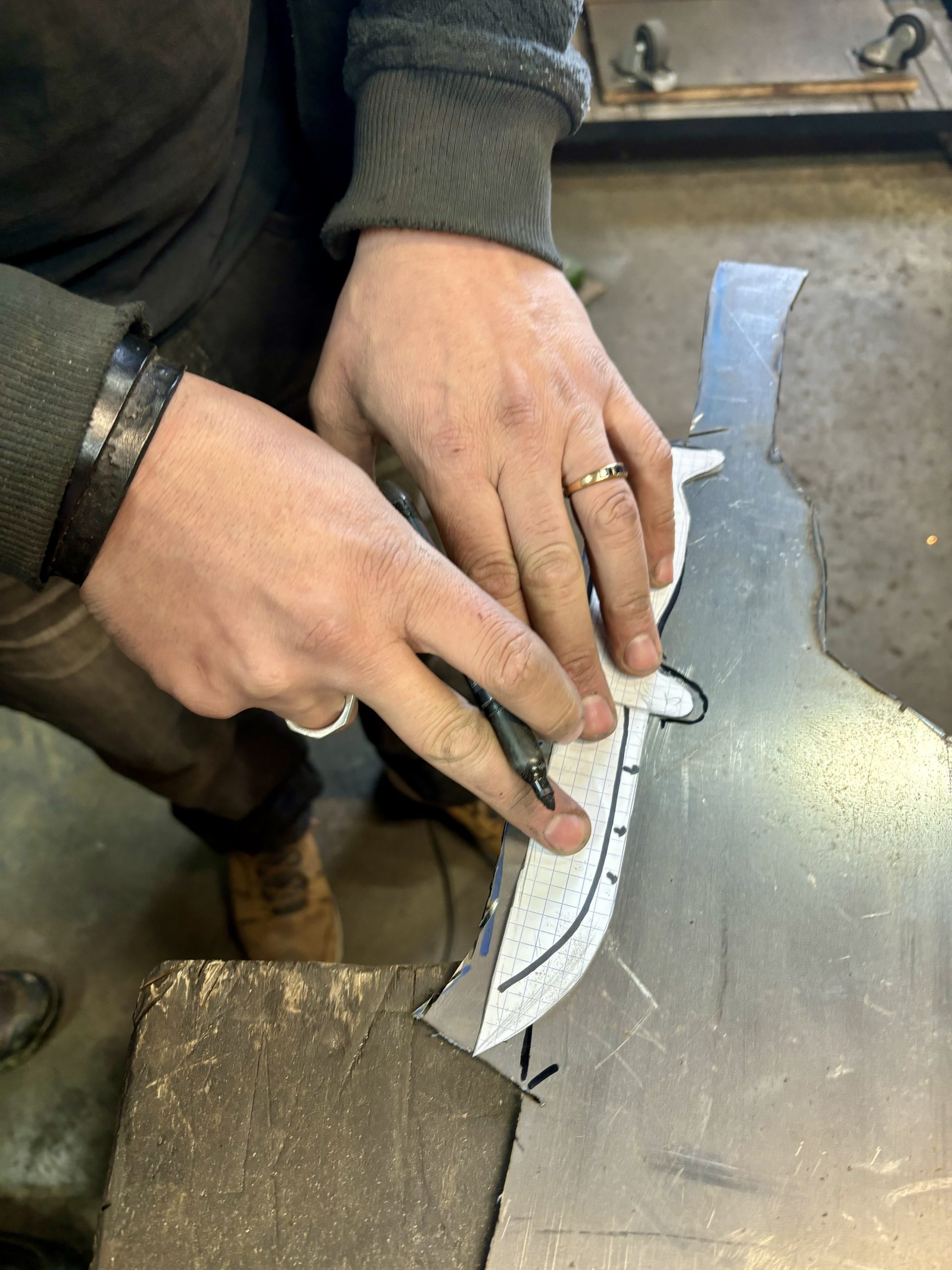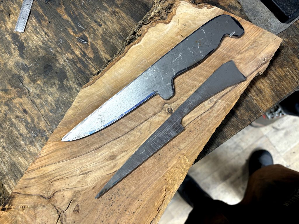 On démarre à 9h pétante dans l’atelier. Avec un franc parler et une aisance relationnelle certaine, Stephen donne le ton de la journée : on va travailler, apprendre et surtout s’émerveiller. Comme dans l’émission, Doug Marcaida en moins, tout part de combo papier/crayon. Là, vous dessinez la forme de votre lame avec la seule contrainte que le projet rentre dans une feuille A4. Cruciale, cette étape va déterminer le reste de votre journée, même si des ajustements peuvent intervenir au fil de la création et des cagades que vous risquez de faire. Rassurez vous, Stephen n’est jamais loin et rattrapera ce qui ne va pas.