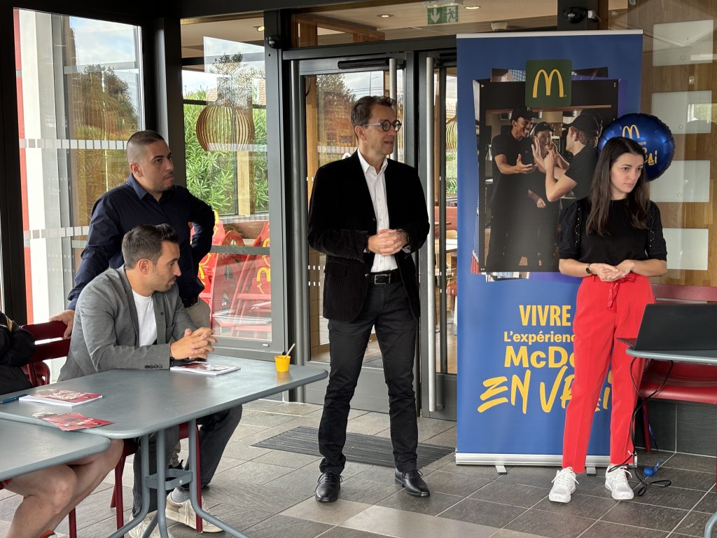 À la baguette, Alexandre Laporte, franchisé McDo qui est à lui seul un modèle d’évolution. Ayant commencé sa carrière en tant qu’équipier, donc celui qui fait les frites et les sandwichs, il est désormais à la tête de 8 établissements sur l’Ouest Toulousain. Une culture d’entreprise quasi introuvable ailleurs. Pourtant chez McDo, les succèss stories faites de méritocratie sont monnaie courante. 95% des directeurs de restaurants sont issus de la promotion interne. Quand on sait que chaque établissement compte une cinquantaine de salariés, il est ici question de gérer une solide PME.