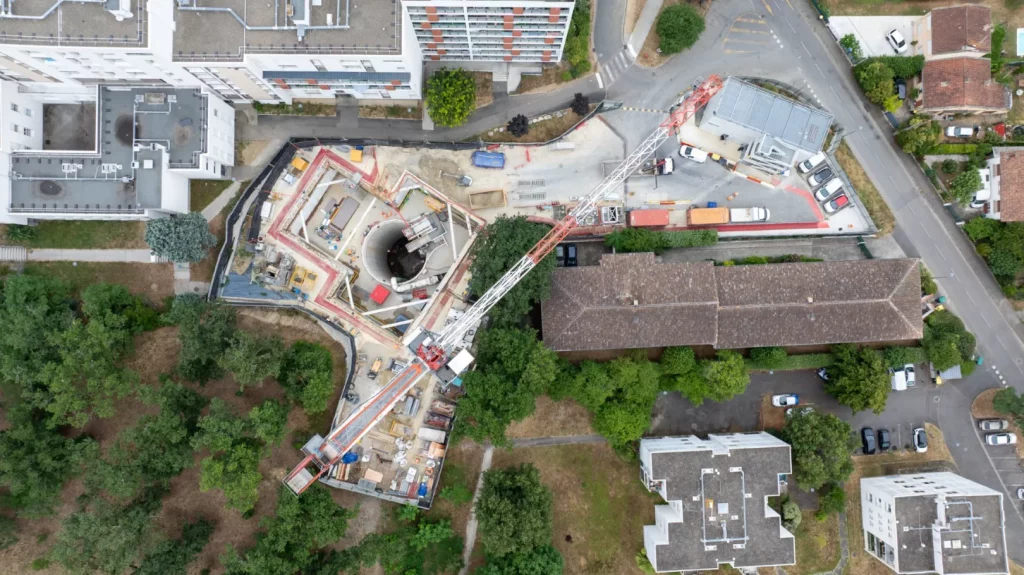 Pour accompagner ce projet hors norme, Tisséo a associé un dispositif photographique qui l’est tout autant. Depuis l’installation des emprises de chantier, des drones photographient les chantiers et gardent la mémoire des progrès réalisés jours après jours et nous livrent des photographies d’une qualité visuelle évidente. Tisséo partage sur son site internet et ses réseaux sociaux l’actualité de ces deux projets spectaculaires et explique les techniques mobilisées pour nous permettre de vivre avec les équipes la construction d’ouvrages spectaculaires. Désormais, ce sont sur les palissades cerclant les chantiers que ces images sont visibles. 30 clichés pris du ciel pour mieux intégrer l’ampleur de ce chantier ainsi que les enjeux liés à ce mode de déplacement qui va révolutionner la vie de milliers de voyageurs.