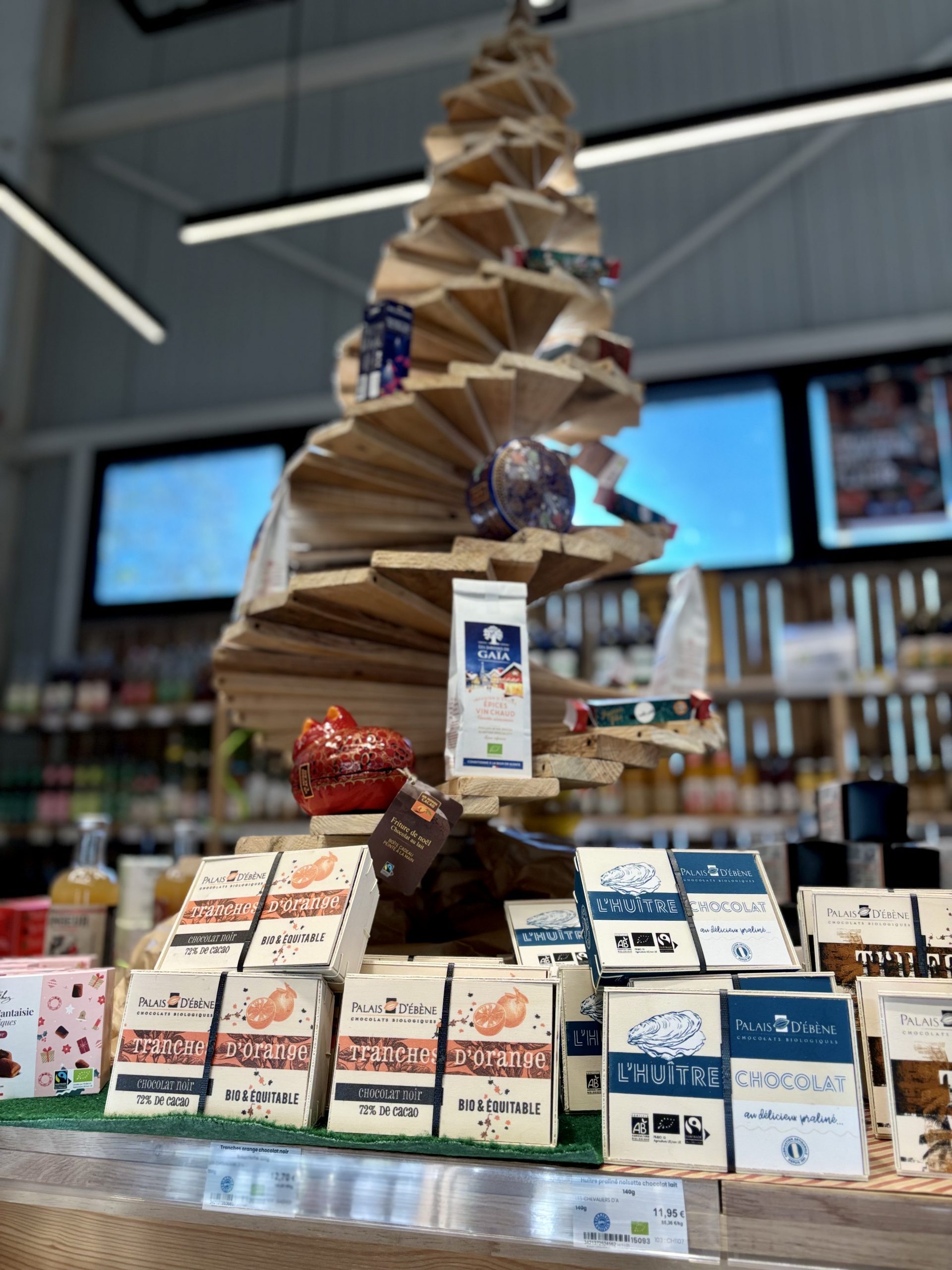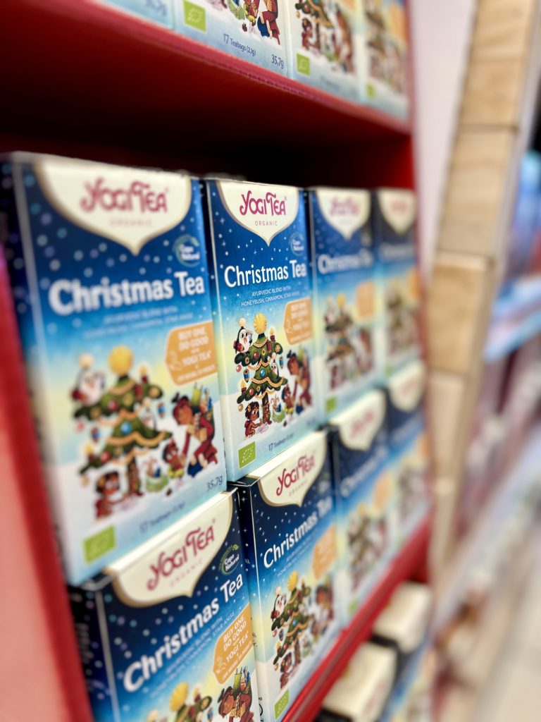 Le large magasin implanté depuis 5 ans à Cornebarrieu y va sans équivoque dans le mode Noël avec un espace dédié dès l’entrée. Là, ce sont chocolats, pétillants avec ou sans alcool (doucement sur ces derniers) et autres idées de cadeaux qui sont présentées au pied du sapin. Dans le reste de l’espace, on trouve dans bien des rayons des produits dédiés à la plus belle des Fêtes. On trouve ainsi des coffrets cosmétiques de Noël ou encore des tisanes et infusions dédiées. À ce propos, Biocoop Cornebarrieu déborde de références de la célèbre marque Yogi Tea. Sans dire qu’ils ont absolument tout, force est de constater qu’ils en ont en pagaille.