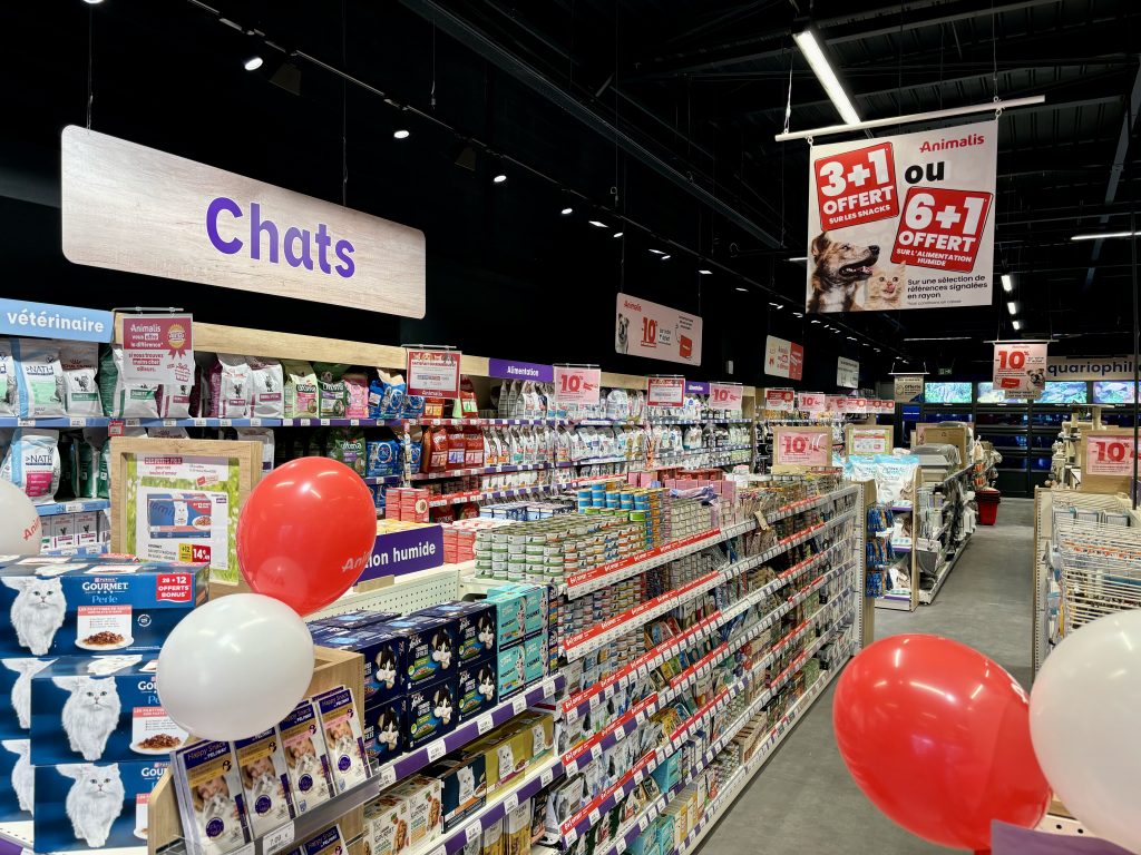 850m2 de magasin flambant neufs font d’Animalis un sérieux acteur de l’animalerie. Des croquettes (avec une large gamme vétérinaire) aux produits d’hygiène, des couchages douillets aux arbres à chat spacieux, des aquariums lumineux aux équipements de terrariums les plus pointus, des grandes volières à oiseaux à l’adorable petite roue pour rongeurs… retrouvez dans vos magasins Animalis tous les accessoires destinés à améliorer votre quotidien et celui de vos animaux familiers.